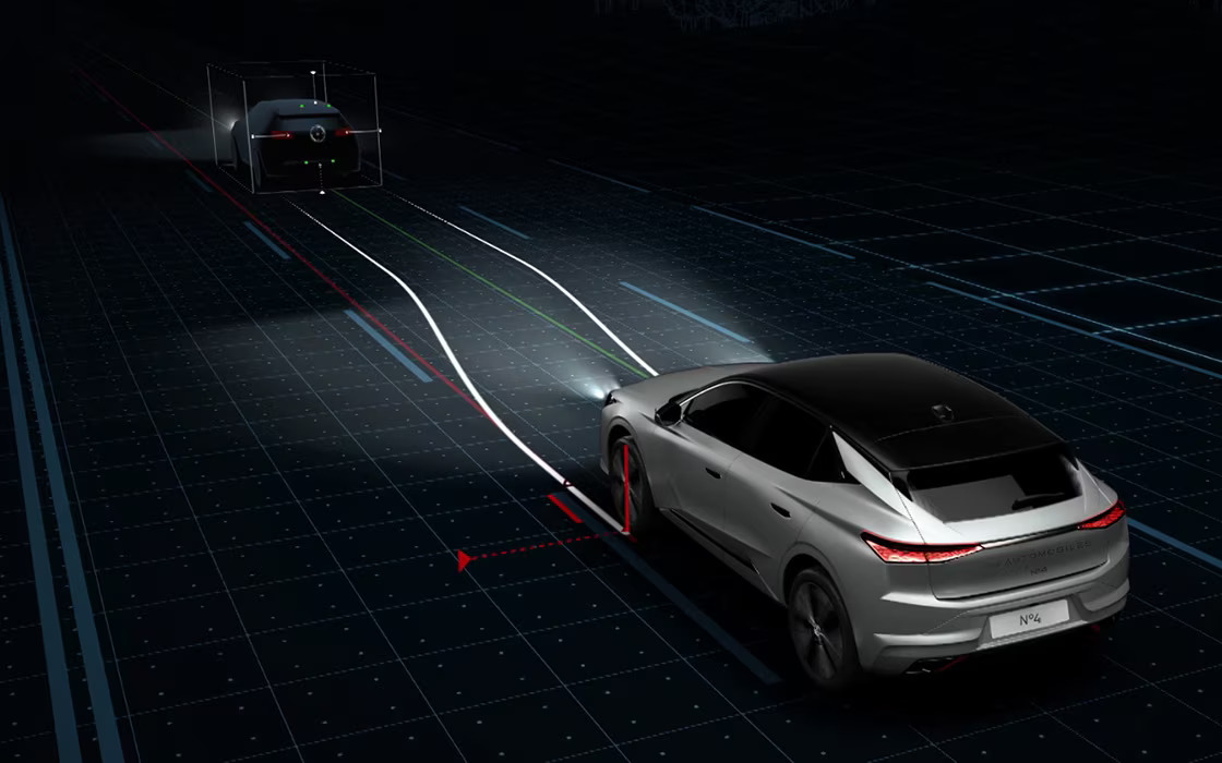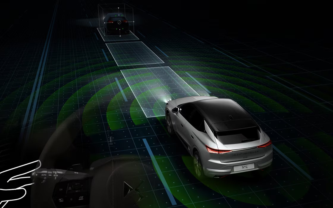Systém DS DRIVE ASSIST sme navrhli tak, aby vám pomáhal a zároveň vám umožnil kedykoľvek získať kontrolu nad vozidlom. DS DRIVE ASSIST reguluje rýchlosť a vzdialenosť od vozidla pred vami a presne umiestňuje N°4 do jazdného pruhu podľa vašej voľby pôsobením na riadenie. Kontroluje rýchlosť a trajektóriu, aby zabezpečil vašu bezpečnosť a pokoj za volantom.