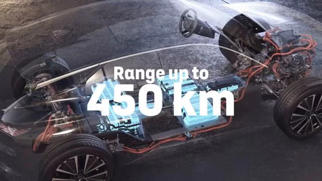 Vďaka tomu vozidlo dosahuje dojazd 450 km v kombinovanom cykle WLTP1 s dobitím na 20-80 % za približne 30 minút.