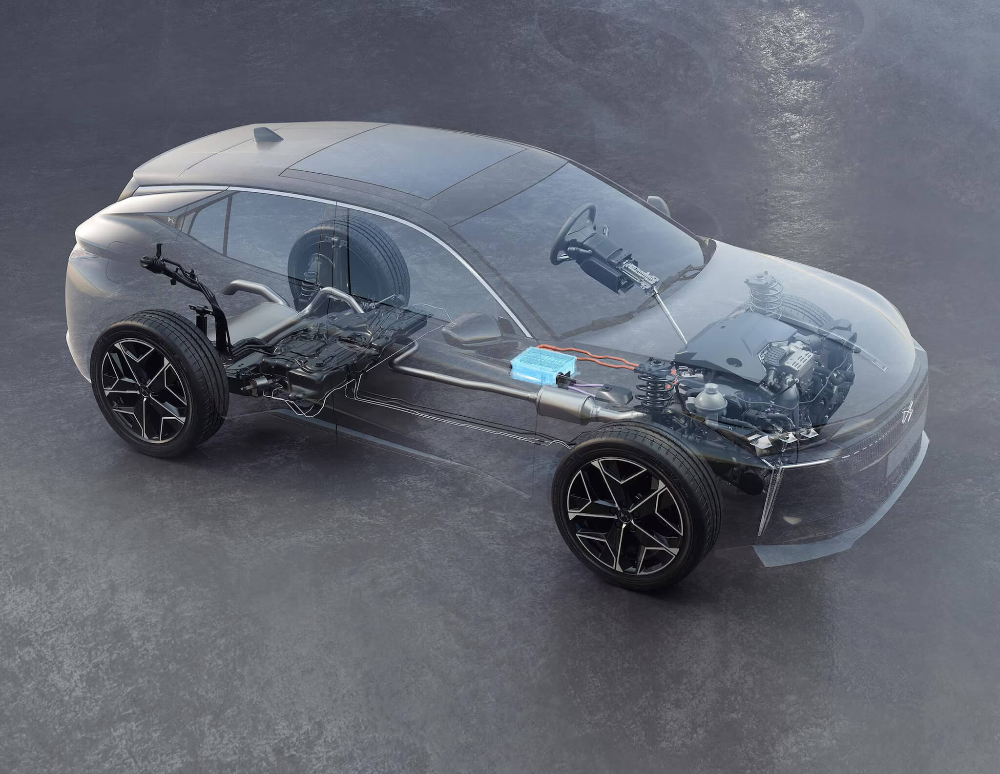 V zadnej časti nové dymové chrómové svetlomety dokonale ladia s elegantnými líniami vozidla a dodávajú mu osobitý charakter. Zadné blatníky odhaľujú tvarovanú muskulatúru, zatiaľ čo čierna lakovaná lišta jemne zvýrazňuje zadné svetlá a zadné dvere. Nový podpis DS Automobiles z leštenej nehrdzavejúcej ocele decentne zdobí zadnú časť vozidla.