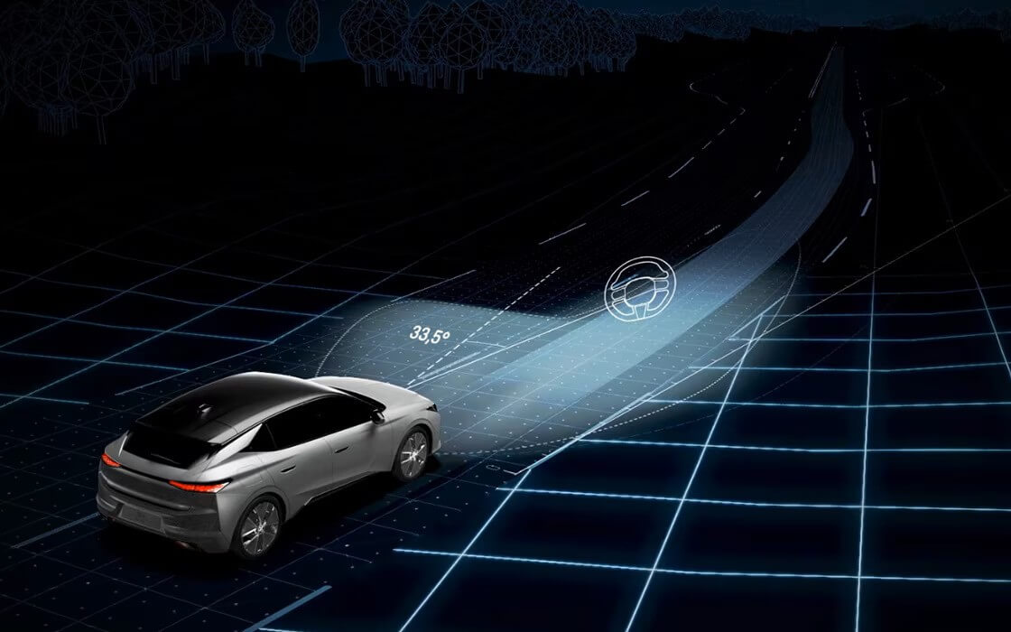 Systém DS DRIVE ASSIST 2.0 zlepšuje zážitok z autonómnej jazdy integráciou poloautomatickej zmeny jazdného pruhu a odporúčaní rýchlosti na základe dopravných značiek.