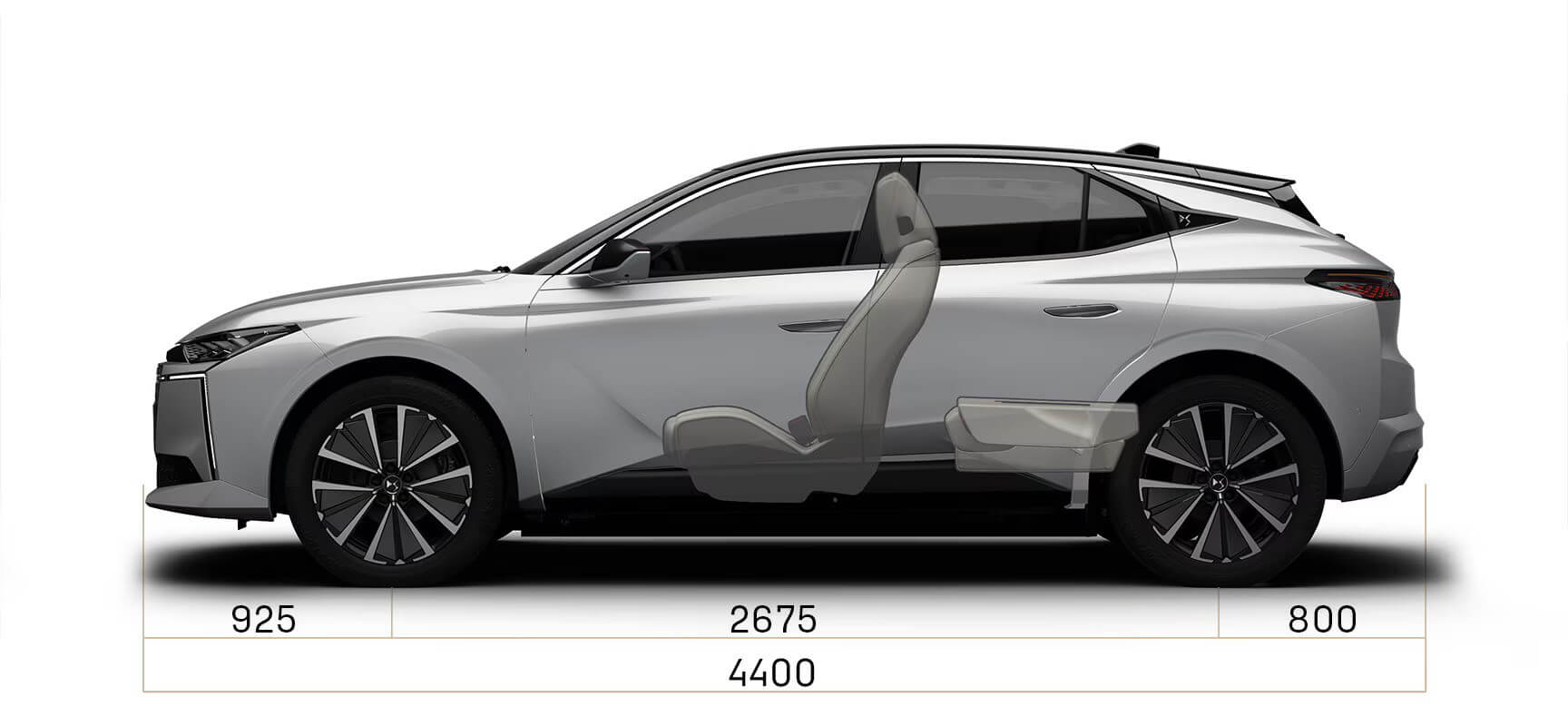 N°4 má novú prednú masku s osvetleným logom DS, inšpirovanú koncepčnými vozidlami DS AERO SPORT LOUNGE a DS E-TENSE PERFORMANCE. Hypnotické svetlomety DS MATRIX LED VISION dodávajú vozidlu ostrý, inteligentný vzhľad.