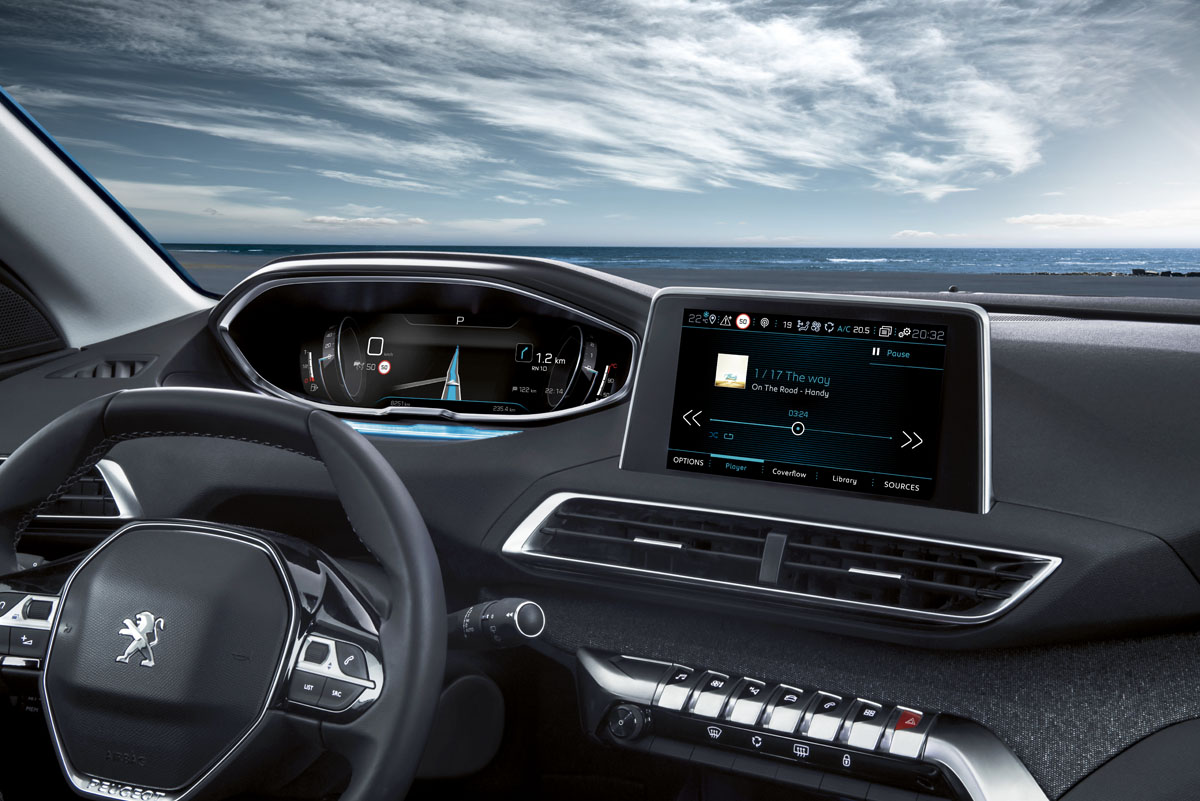 Vo vnútri nájdeme jedinečné prostredie vodiča s najnovšou verziou inovatívneho, takmer futuristického - PEUGEOT i-Cockpit®, ktorý ponúka pasažierom nové skúsenosti z jazdy, ktoré sú prekvapením a potešením. Vďaka svojmu kompaktnému volantu, veľkej palubnej doske s dotykovým displejom a dotykovou obrazovkou, veľkému 12,3" displeju s vysokým rozlíšením zaujme nový PEUGEOT i-Cockpit® vodičov aj vynikajúcou grafikou a elegantnými animáciami.