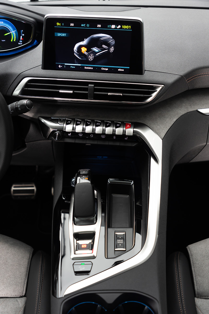 V prevedeniach s dobíjateľnými hybridnými motormi umožňuje volič jazdných režimov prepínať medzi Elektrickým (nastaveným štandardne pri štarte), / Hybridným / Športovým a 4x4 módom (iba HYBRID4 300).