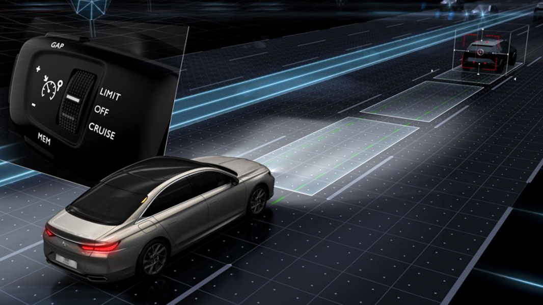 Vyvinuli sme systém DS DRIVE ASSIST, aby sme vodičovi pomohli s riadením a zároveň mu umožnili kedykoľvek prevziať kontrolu nad svojim vozidlom. Tento systém upravuje rýchlosť vozidla podľa auta idúceho pred ním a pôsobí na riadenie, aby vozidlo DS 9 viedol v jazdnom pruhu, ktorý si vodič zvolí. Riadi rýchlosť a trajektóriu s cieľom zaručiť bezpečnosť a pokoj za volantom.
