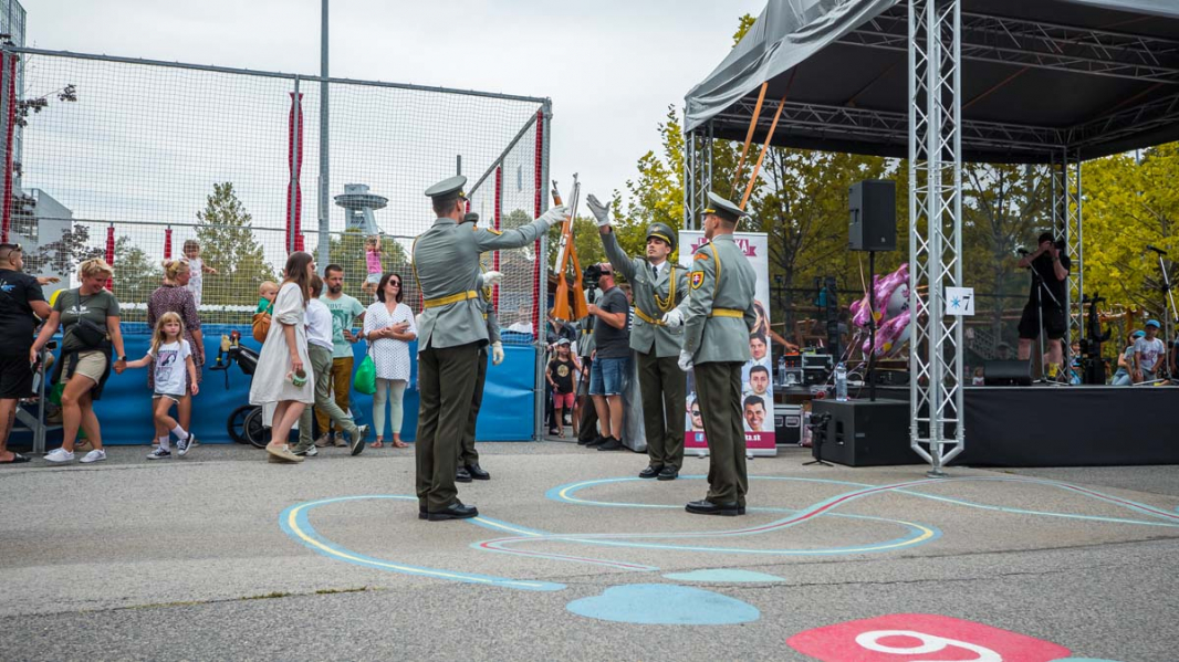 Na PÓDIU za Auparkom o 16:00 VYSTÚPI ČESTNÁ STRÁŽ OZBROJENÝCH SÍL SR, Zuzana Vačková vyžrebuje víťazov, Zuzana Smatanová zaspieva a na úplný záver celého podujatia je pripravená NAJVÄČŠIA PENOVÁ PÁRTY NA SLOVENSKU.