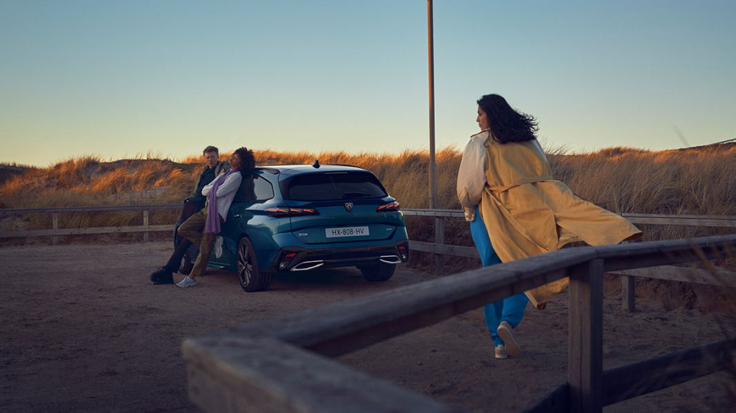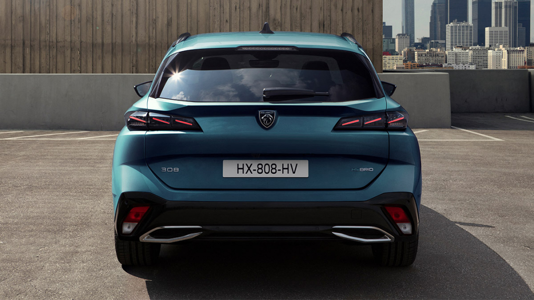 Súčasťou zadnej časti sú aj ultratenké full LED svetlá, rovnako ako pri hatchbacku, avšak bez čierneho pruhu, ktorý ich prepája. Namiesto toho sa nový PEUGEOT 308 SW snaží viac upriamiť pozornosť na šírku zadnej časti auta vrátane zvýraznených podbehov a blatníkov , ktoré majú upriamiť pozornosť práve na veľkosť pridaného extra priestoru vzadu. Rovnako ako pri hatchbacku je zadná časť optimalizovaná s ohľadom na efektívne prúdenie vzduchu pre čo najlepšiu aerodynamiku. Obzvlášť zaujmú najmä výrazné podbehy a prahy, pôsobiace ako predĺženie bočnej siluety, kde v úlohe aerodynamického deflektoru usmerňujú prúdenie vzduchu od dverí.