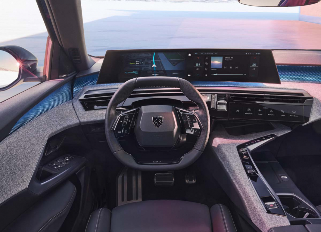 Kreatívne tímy značky PEUGEOT sa rozhodli spojiť dva z troch základných prvkov ergonomického riešenia i-Cockpit®, vyvýšený prístrojový panel a veľký centrálny dotykový displej. Tie sú teraz integrované do zakrivenej panoramatickej obrazovky tvorenej jedným 21-palcovým panelom s vysokým rozlíšením, ktorý siaha od ľavého konca palubnej dosky prakticky až po stredovú konzolu.