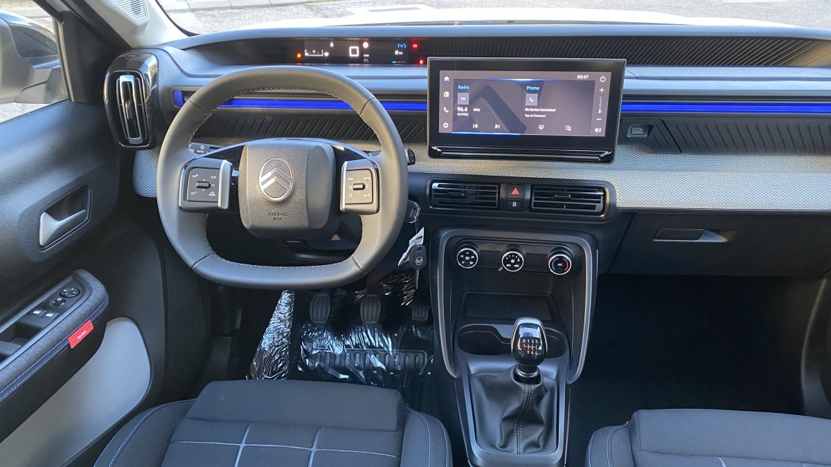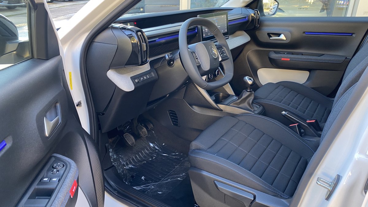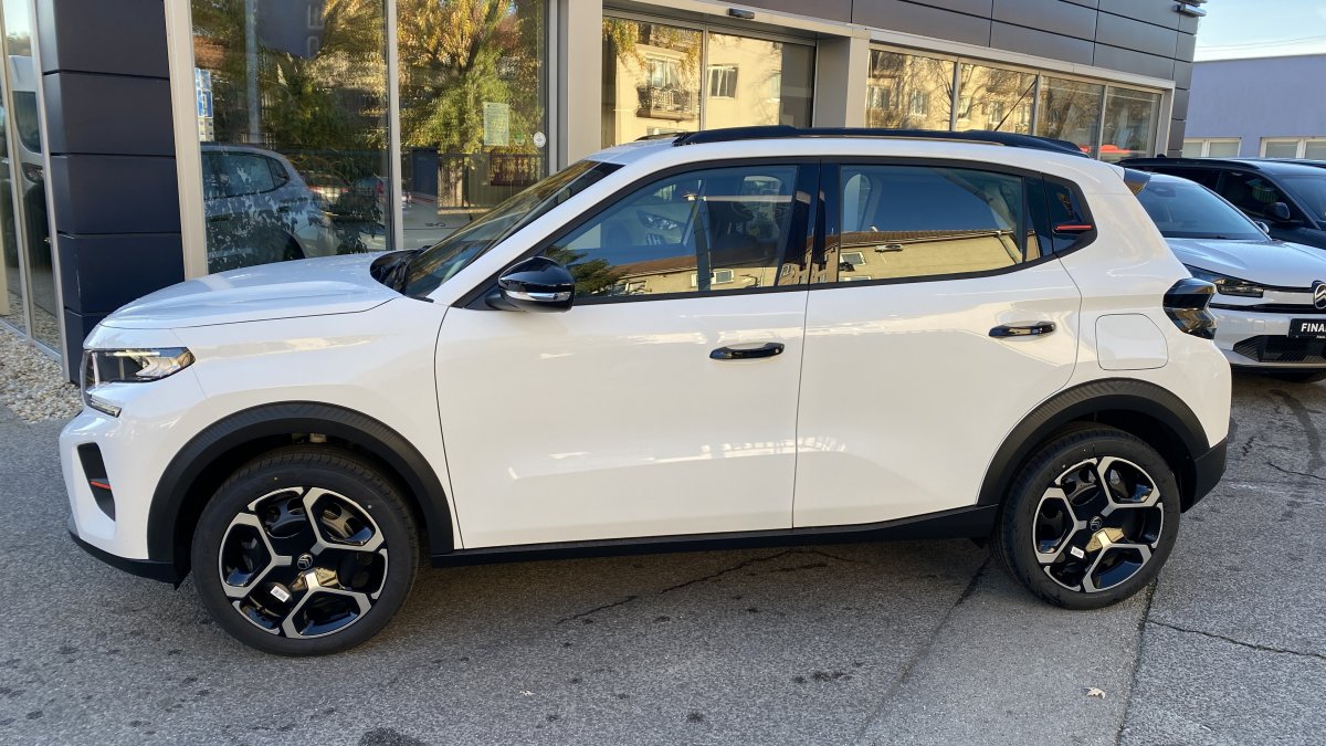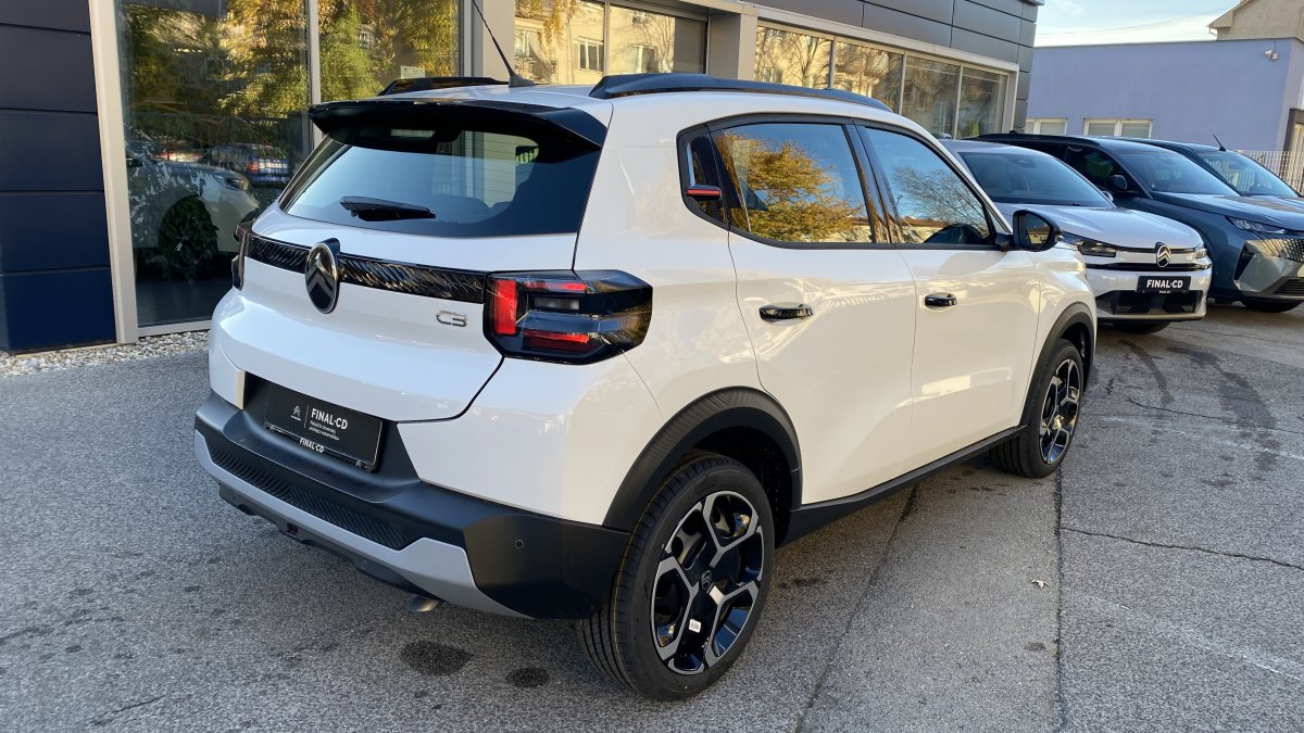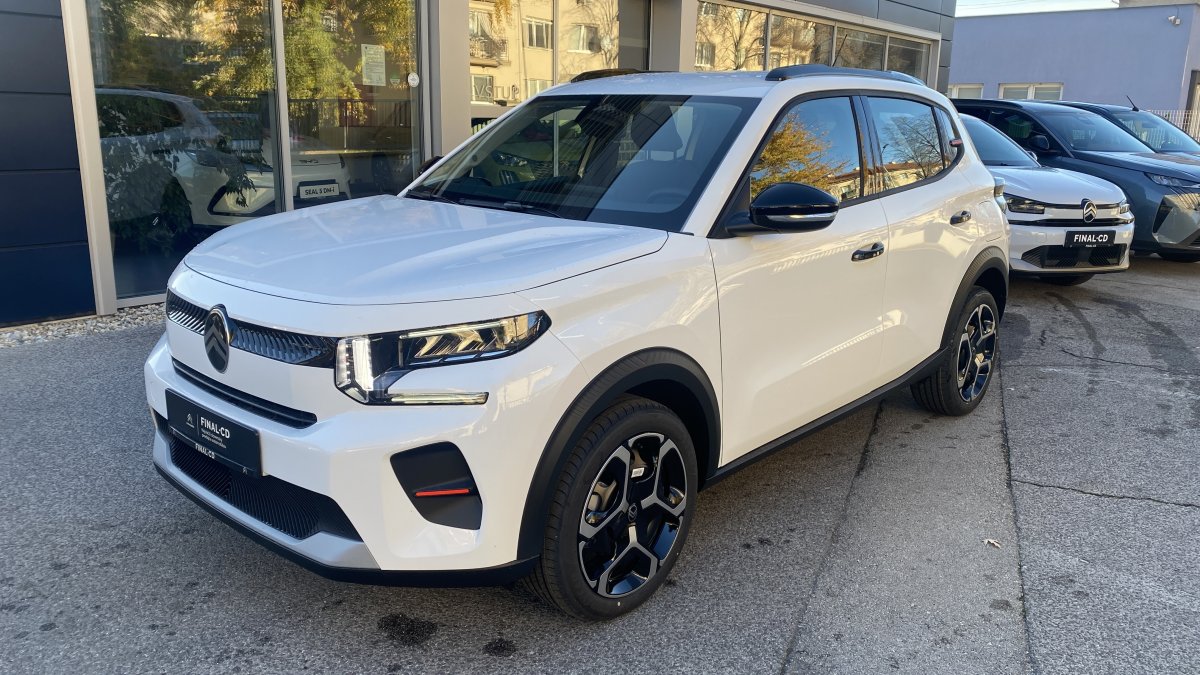 Záruka 4roky/60000 Citroen PAUŠAL už za 239€ mesačne My Citroën Play Plus: 10‘‘ dotykový displej, FM/ DAB (digitálne) rádio, 6 reproduktorov, Hands-free Bluetooth®, bezdrôtový Mirror Screen (Apple CarPlay / Android Auto) > 1x konektor USB C vpredu, 2x konektor USB C vzadu > Automatické stierače s dažďovým senzorom > Elektricky ovládané, elektricky sklápateľné, vyhrievané vonkajšie spätné zrkadlá > Kožený volant (umelá koža) > 2x výškovo nastaviteľné opierky hlavy vpredu > Výškovo nastaviteľné sedadlo vodiča > LED osvetlenie interiéru > Zadná lavica delená v pomere 1/3 – 2/3 > Pozdĺžne strešné lišty > ECOLED predné svetlomety > Strecha BITON – Čierna Perla Nera (v sérii pre farby Biela Banquise, červená Elixir, sivá Mercury, Modrá Bright) > Strecha BITON – Biela Opale (v sérii pre farby modrá Monte Carlo, čierna Perla Nera) > Oceľové disky kolies 17" s krytmi AZURITE > Interiér URBAN GREY: Látkový poťah čierny Fabric / tmavo sivý Asphalt, sedadlá Citroën Advanced Comfort > Odkladacie vrecká na zadnej strane predných sedadiel > Pack LOOK PLUS: predný a zadný nárazník vo farbe karosérie, predný a zadný deflektor nárazníku v sivej farbe, vonkajšie kľučky dverí čierne lesklé, kryty vonkajších spätných zrkadiel čierne lesklé, stĺpik B, C v čiernej lesklej farbe, ochranné lemy blatníkov a prahu karosérie, palubná doska a panely dverí s modrým dekórom > Farebný ozdobný prvok karosérie (v závislosti od farby karosérie biely/červený/žltý)